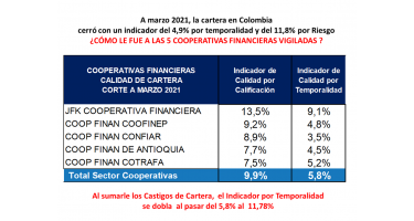 Con corte a marzo de 2021, y según cifras de la Superintendencia Financiera, el indicador de calidad de la cartera por...