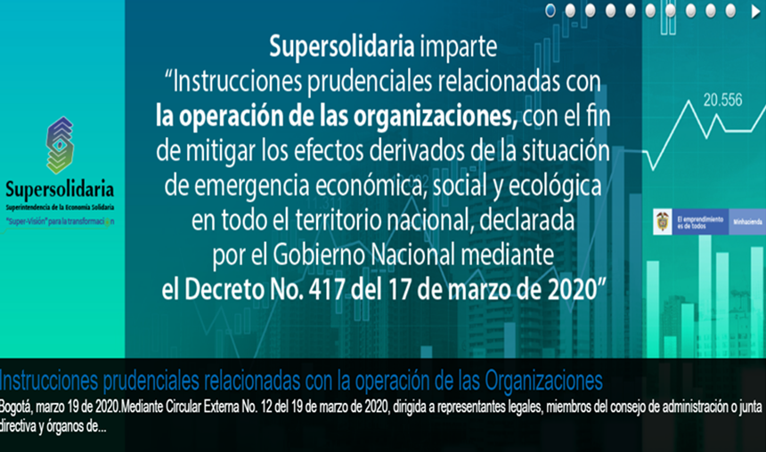 LA SUPERSOLIDARIA IMPARTE INSTRUCCIONES A SUS VIGILADAS PARA GARANTIZRA LA OPERACIÓN EN MEDIO DE LA CRISIS GENERADA POR EL COVID19