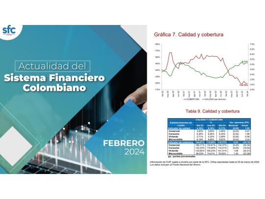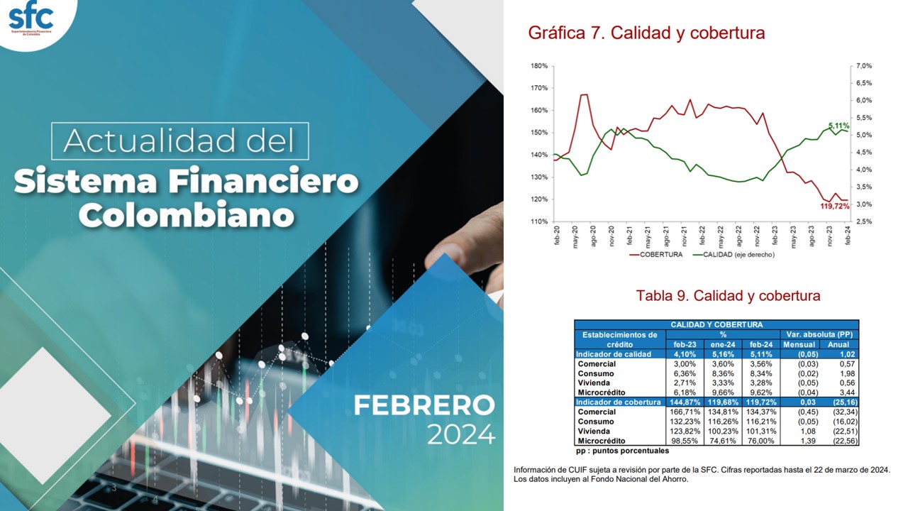 En 5,1% cerró en febrero la cartera vencida en Colombia. Respecto a febrero 2023, el saldo se incrementó a una tasa de 17.8% real anual.