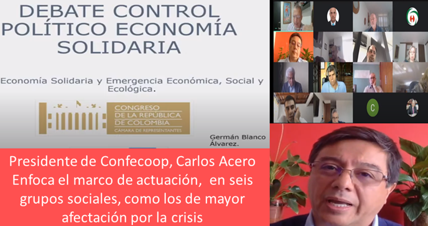 En el Marco del Debate de Control Político citado por la Comisión II de la Cámara de Representantes, el pasado 15 de junio, el Presidente de Confecoop, Carlos Acero Sánchez, insistió en la  relevancia de  la  propuesta que ya fue presentada al Gobierno, con la que se pretende impulsar el desarrollo local y regional, organizar a las personas y las comunidades para la producción, el trabajo, el consumo y garantizar la sostenibilidad de esas comunidades y los entornos en donde operan este tipo de organizaciones.